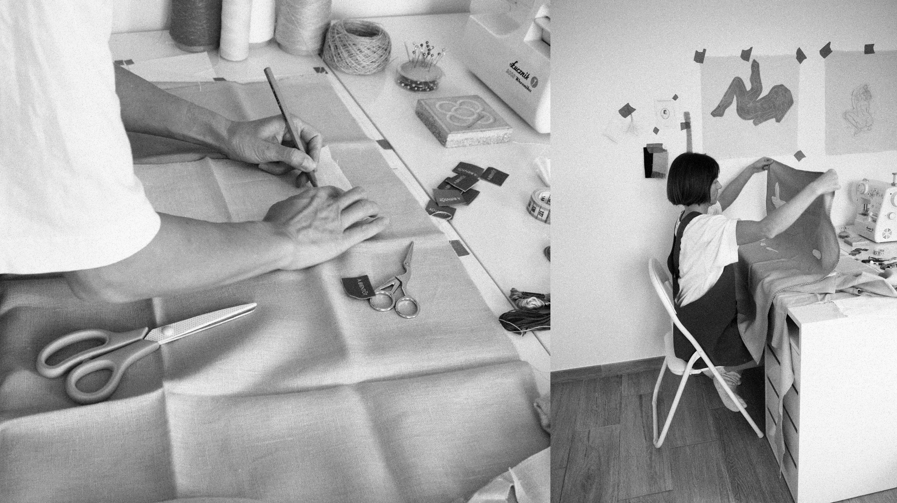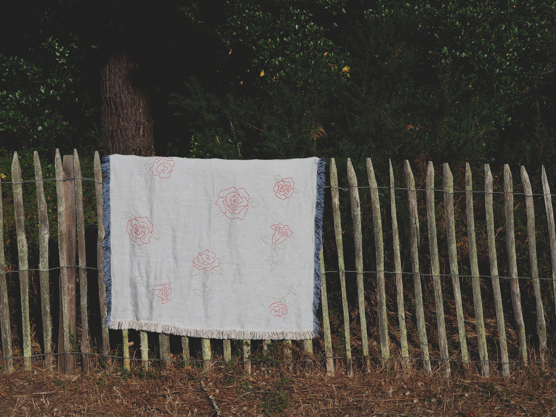 Set de table brodé à la main avec roses et bordure en dentelle de lin