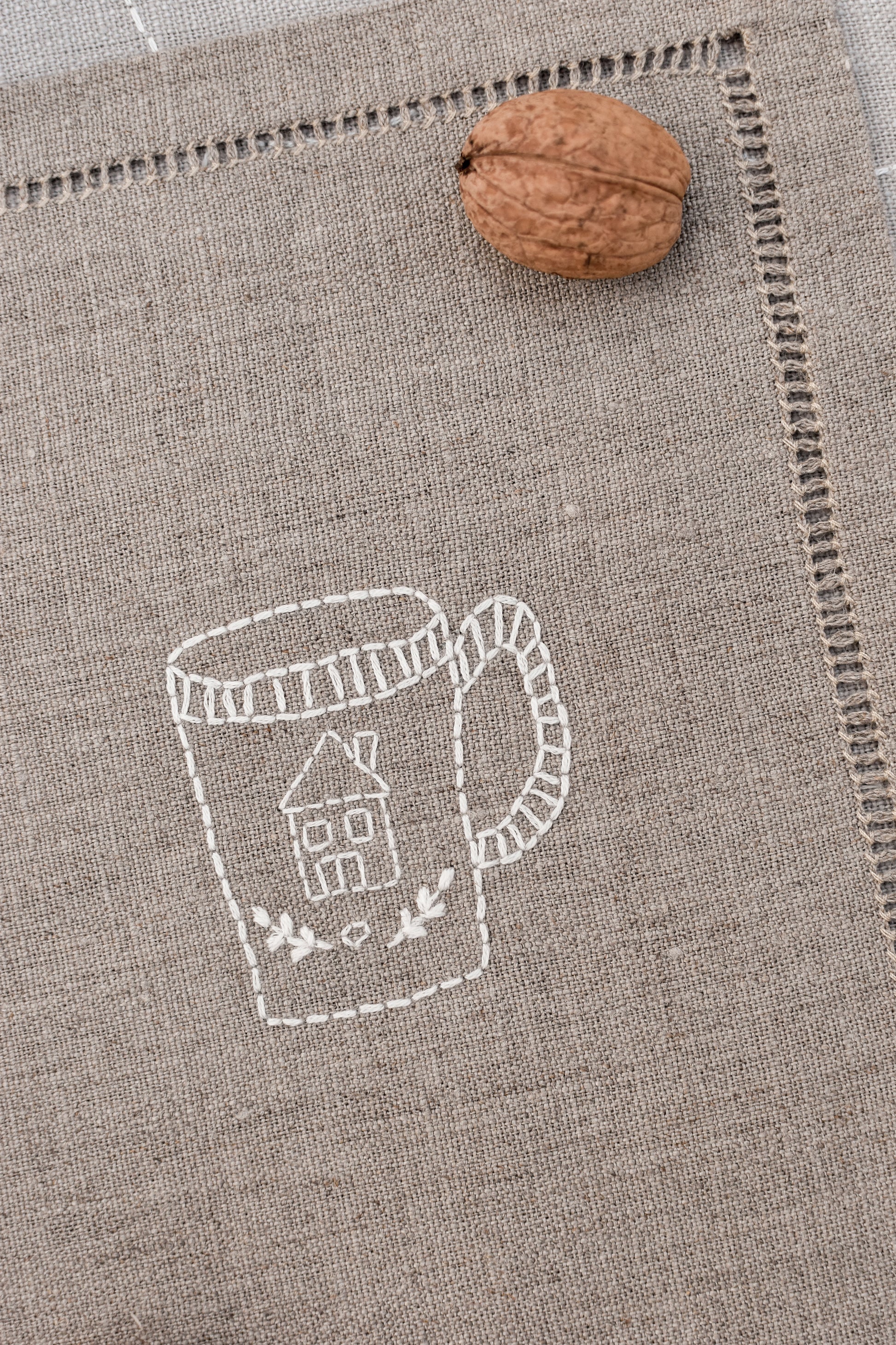 Petit dej est une collection de 4 sets de table différents. Entièrement fait main en lin certifié biologique. Le motif de chaque tapis a été conçu de telle manière qu'une fois combinés, ils forment un ensemble. Brodé à la main avec fil de coton blanc. Le bord est réalisé selon la technique traditionnelle de la broderie.