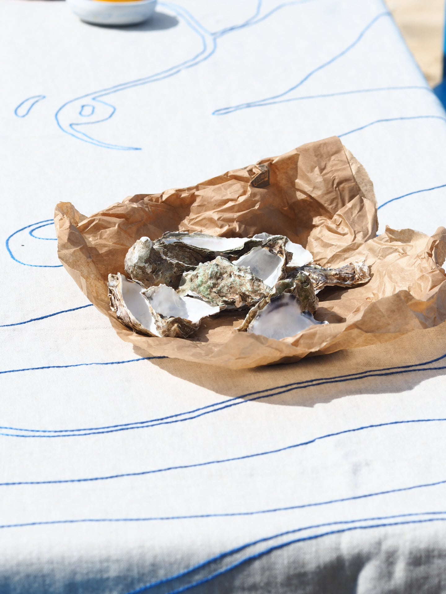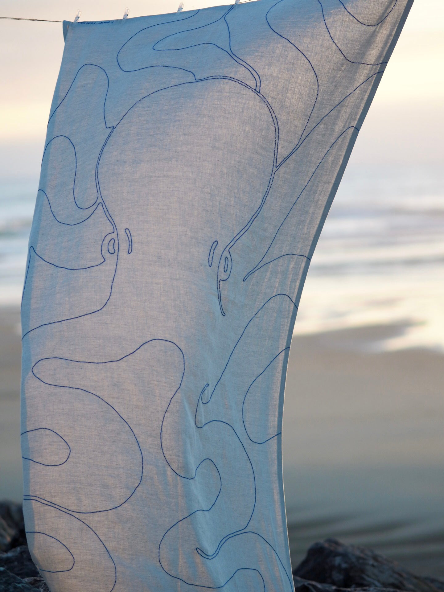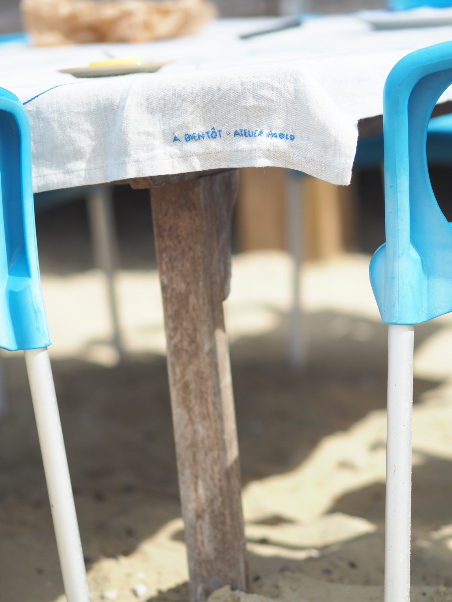 Le Poulpe est une nappe décorative créée en collaboration avec l'Atelier Paolo. La nappe reprend le dessin signature d'Atelier Paolo pour le marier à l'art de la table. Une ode à l'océan et une invitation aux banquets d'été. Réalisé entièrement à la main en lin certifié biologique, brodé avec du fil de coton bleu.