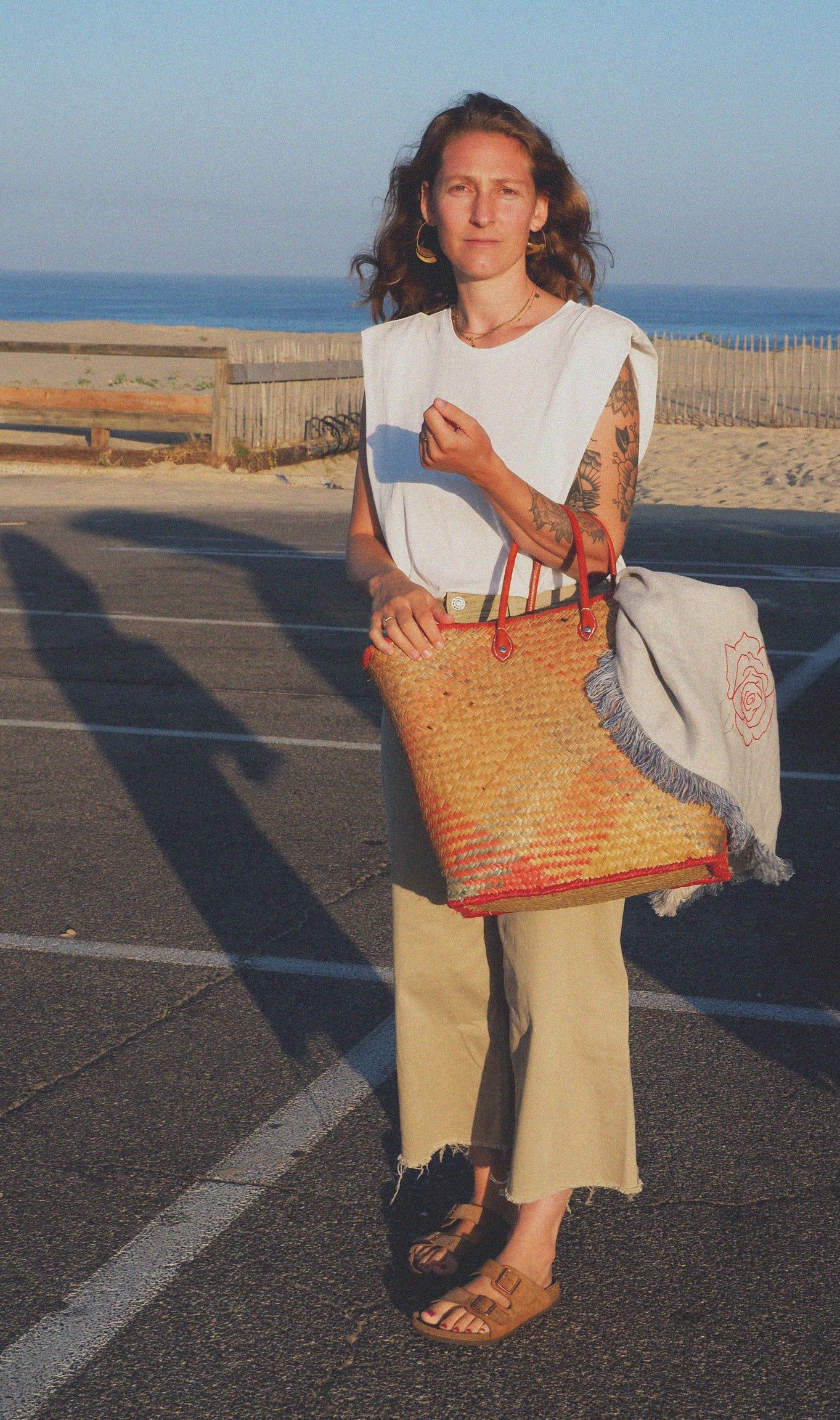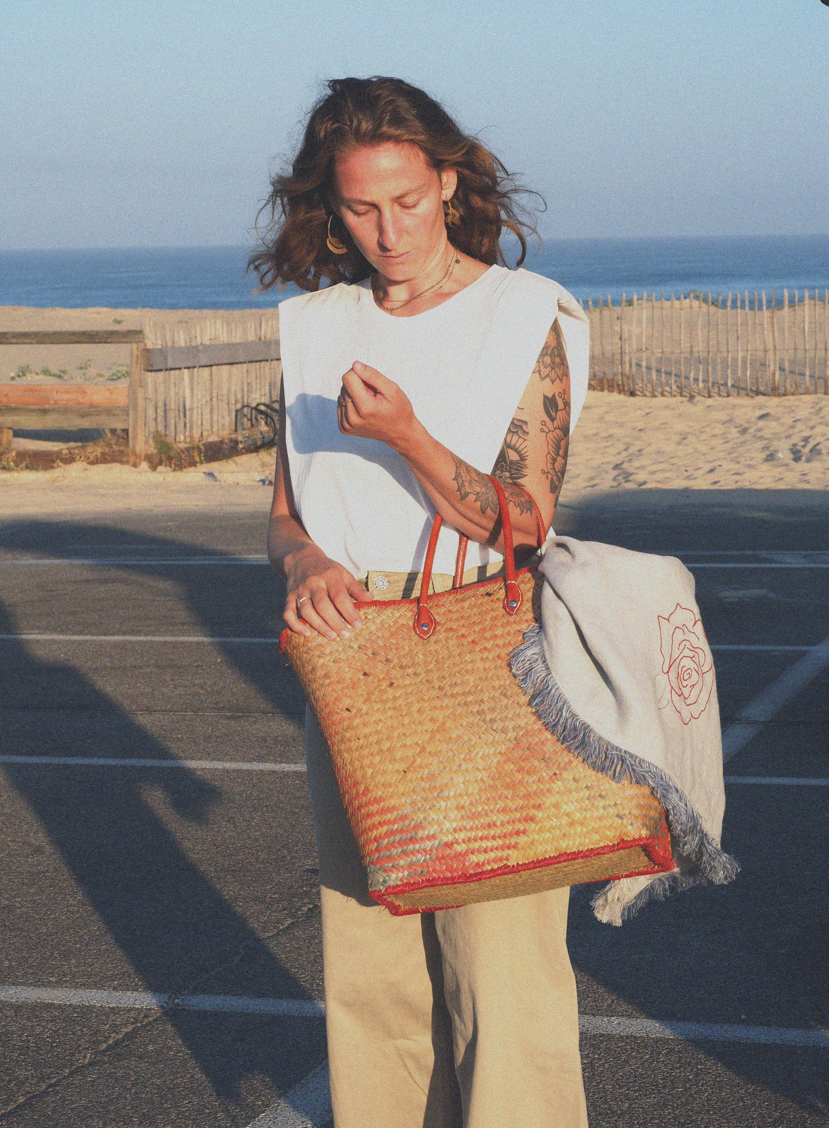Gently wash by hand using natural soap to remove any persistent stains before washing your embroidered À bientôt in the washing machine. Do not use bleach as it will damage the fabric.